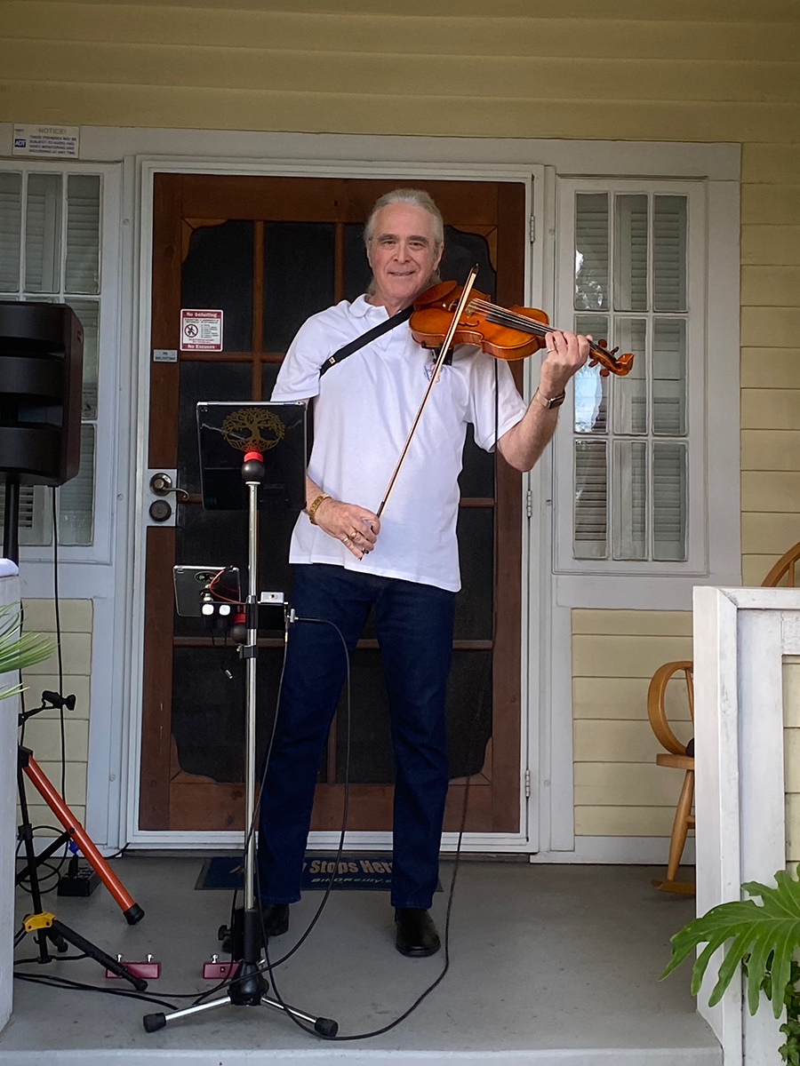 These experiences became a stepping stone for Vitas to come full circle and commence performing solo with recorded backing tracks. “I started performing shows once a week on my front porch in April of 2020,” Vitas said. “I’d play a combination of jazz and New Age material…one time I had around a hundred people from the neighborhood gathered around to listen.” It was his way of thanking many of his neighbors for supporting him during his time of grief after losing his wife to cancer and also to offer live music during the dark days of the pandemic.