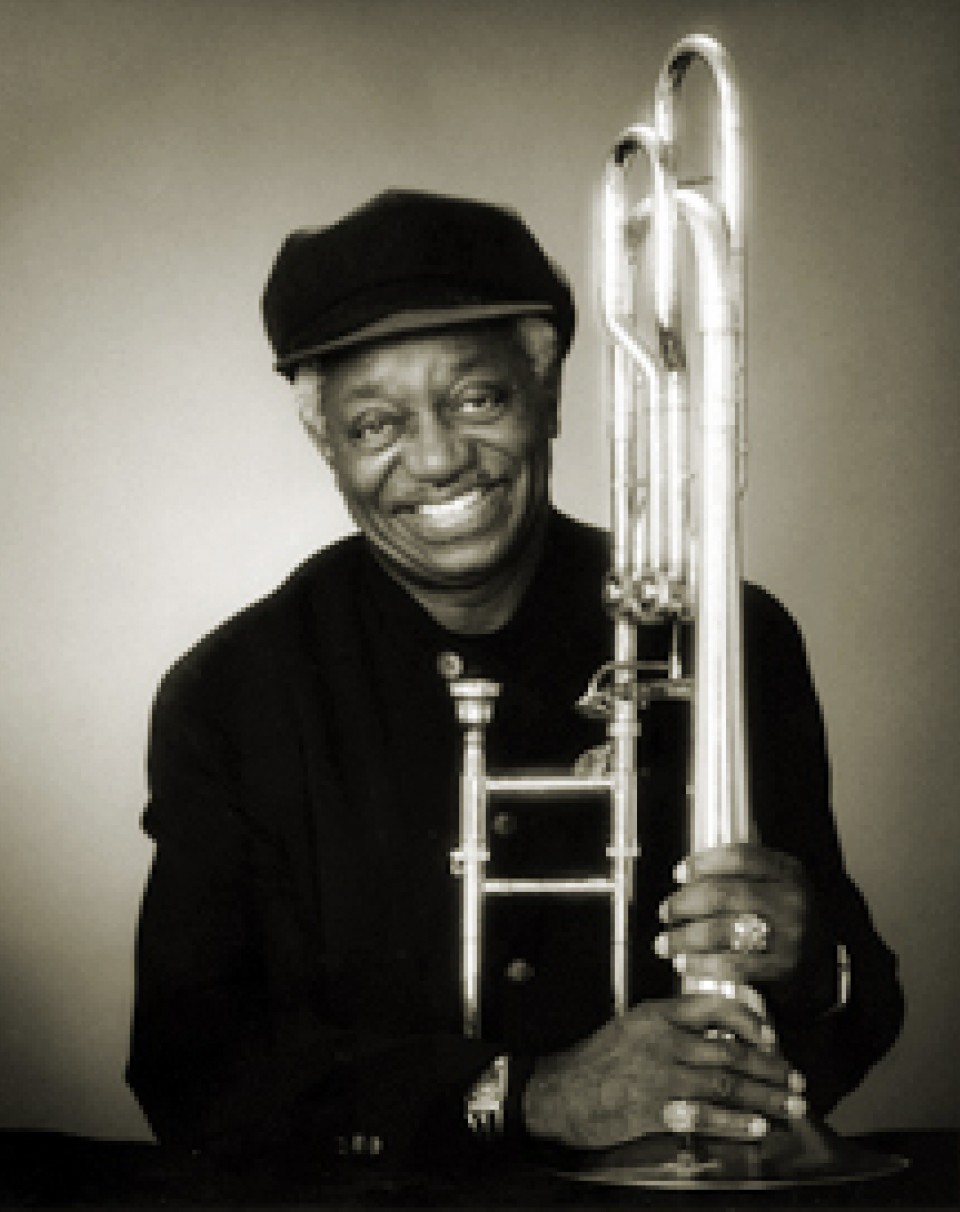 When he was in high school, “Big Chief” introduced him to an old musician friend at the local Elks Lodge. Ray Smith was his name and his rheumy eyes lit up at the prospect of lending the youngster an ancient trombone and of immersing him in the ancient rituals of Masonic beliefs. In return, the boy promised to practice faithfully and march and play in all the Elks parades. His lips fit just fine! Nearing the end of high school he could proudly proclaim that Jimmy Cheatham was his name and playing trombone was his game.