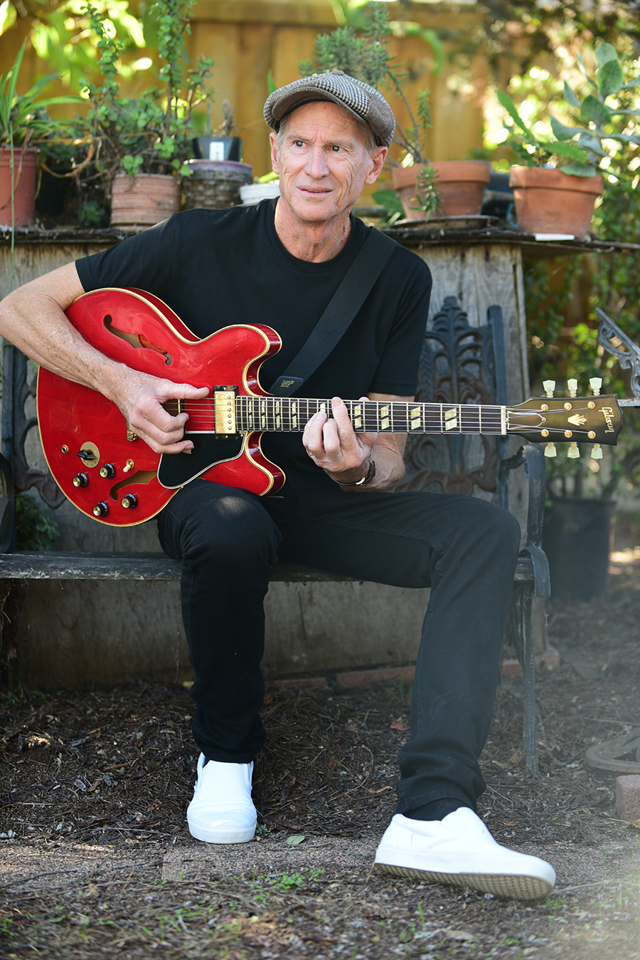 “I used to go to the library on my ten-speed and check out Guitar Player magazine a year at a time. I read every article and every interview with Jimmy Page or Clapton and Hendrix because I wanted to know how they were influenced. And guess who those influences were? It was T-Bone Walker, B.B. King, Lightnin’ Hopkins, Albert and Freddie King, Albert Collins…those names. All those rock players were influenced by the blues, especially the Brits because of the blues boom in the ’50s and early ’60s. And that’s how I got really, really interested in the blues.” Did you play in a lot of garage bands, growing up? “I certainly played in garage bands in Orange County…all right, let’s set up to play. It’ll probably take the cops an hour to get here! [laughing] Invariably, it was too loud for the neighbors.”
