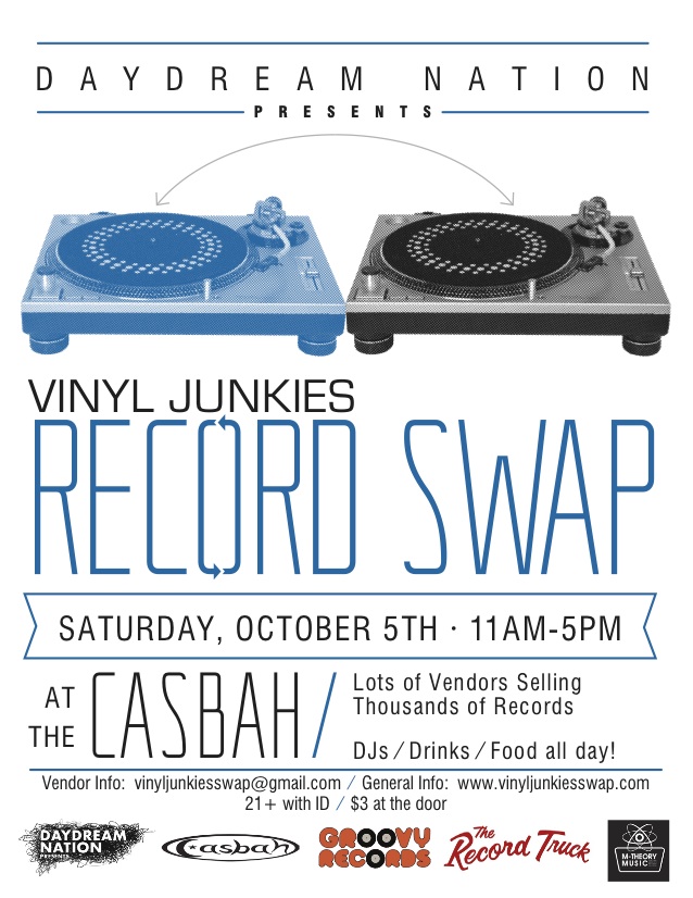 After a wildly successful debut show, Daydream Nation Presents and the Casbah are putting on the second Vinyl Junkies Record Swap Meet, October 5th from 11am-5pm at the Casbah.