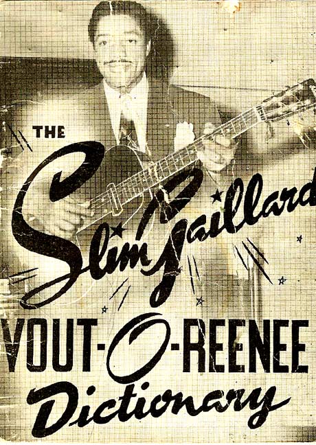 Slim was released from the draft in 1944 and soon led his own trio at various clubs in Los Angeles, including Billy Berg’s (where he was the opening act for Charlie “Bird” Parker) and the Swing Club where he topped the bill. He made a string of, as he said, “very groovy, very mellow” recordings for a bunch of small labels including Queen, Cadet, Atlantic, Atomic, and Twentieth Century. Included were best selling hits like “Cement Mixer,” “Yep Roc Heresy,” and “Down by the Station,” which became a surprising hit as a children’s song (“see the little puffer-bellies all in a row, see the station master turn the little handle, chug chug toot toot off we go”). Slim even published a dictionary of jive talk, and that’s where he got intro trouble.