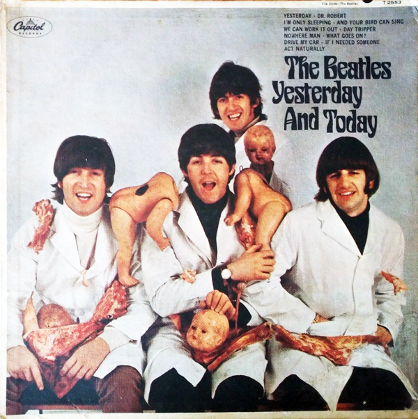 It’s difficult to verify what the Beatles’ intentions were when they embarked upon a photo shoot with photographer Robert Whitaker, where they donned white smocks and allowed themselves to be draped in pieces of raw meat with decapitated baby doll parts strew about. One school of thought regarding Yesterday and Today’s “Butcher Cover” (as it came to be known) is that this was a form of protest against the Vietnam War. Others believe that it is a direct commentary about how their artistic output had been “butchered” for the North American market. Whatever the motivation, the outcry against the image in America led to most of the original Yesterday and Today albums being recalled, with an innocuous picture of the Fabs around a steamer trunk pasted over the offending image. This face-saving maneuver by Capitol led to a $250,000 debacle, and created of one of the most sought-after items in the history of record collecting. Depending upon the “state” of the album and overall condition, copies of the original “Butcher Cover” change hands for hundreds, and sometimes thousands, of dollars.