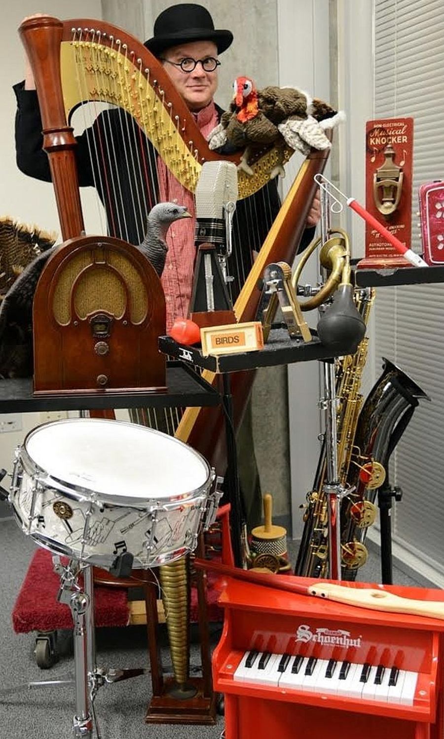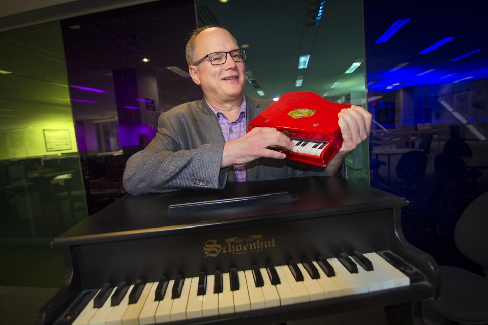 Paulson and a toy piano.