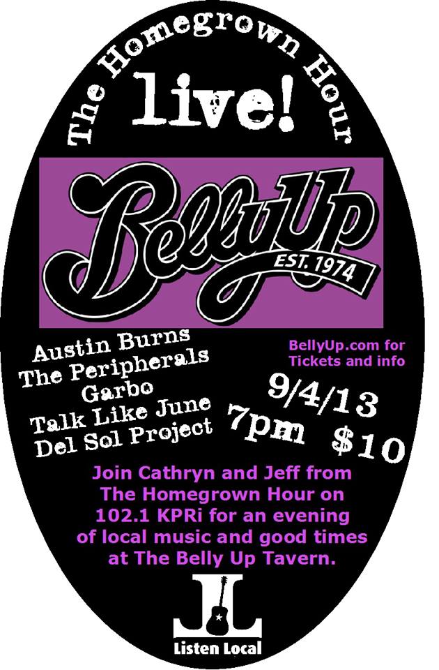 Local music promoter Cathryn Beeks is at it again, folks, working tirelessly to find a space for local music in San Diego. Tonight’s event is an important one – she is hosting KPRI’s The Homegrown Hour live at BellyUp Tavern in Solana Beach (7pm – $10).