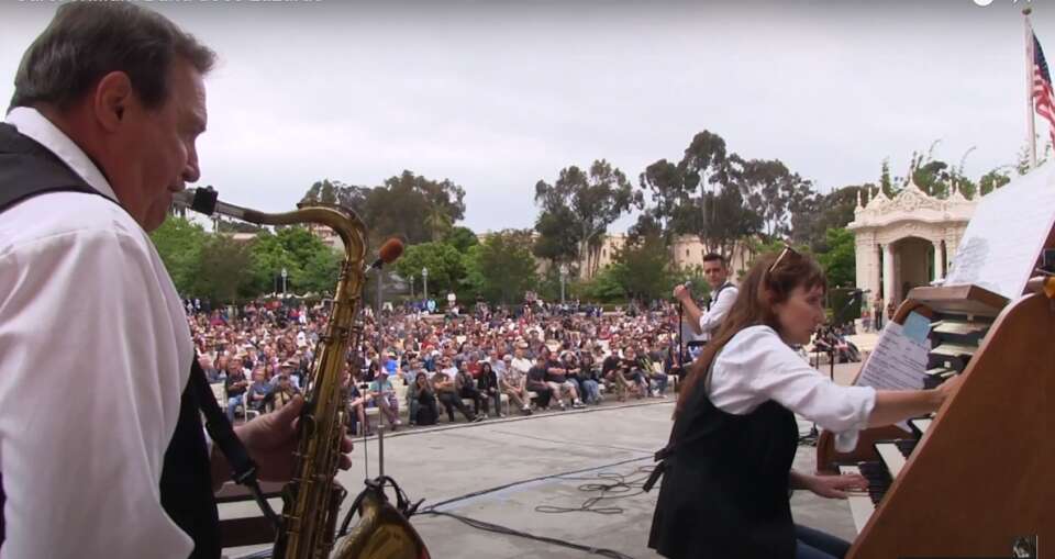 “Playing with Carol was an amazing experience,” Tisch said. “It was extremely elevating to be able to blend my instruments with that superb organ and its incredible tone, absolute pitch, and warm resonance. Combined with the natural and augmented onstage acoustics of the pavilion, you could hear every note to its utmost quality and fidelity. And, of course, there was also Carol’s immense talents and all the other wonderful performers. It was very pleasing from a musician’s perspective as a soloist and band member. It’s every musician’s dream to be able to perform in a setting like that.” He notes the view from the stage, looking out over the core of Balboa Park was inspiring. “There was a sea of people at those concerts,” Tisch recalled. “With the audience at full capacity every show, the view from stage was most pleasing with respect to being able to bring enjoyment to people of all ages, and it elevated my and our band’s playing with favorable appreciative responses. Carol was most gracious in allowing me to inject and express my own artistic creative styles to these everlasting masterpiece songs.”