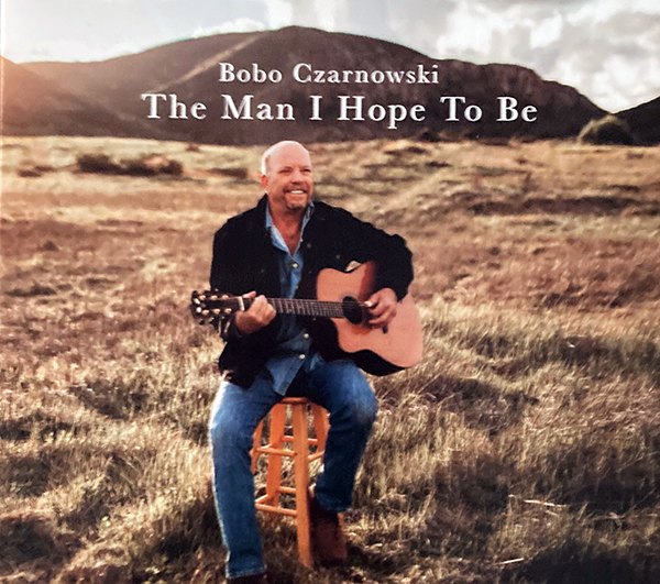 Are you a fan of Gordon Lightfoot, Tom Paxton, or perhaps some of the other notable folk singers back in the day? If so, you certainly will enjoy The Man I Hope to Be, a ten-track debut album from singer/songwriter Bobo Czarnowski, recorded, mixed, and produced by Jeff Berkley at his Ohm Grown Studio in Oceanside, California. Nine of the ten tracks are original tunes backed aptly by an all-star cast of musicians, including the late great Dennis Caplinger (mandolin, banjo, fiddle), Drew Cady (cello), Sharon Whyte (piano, organ, accordion), and Berkley adding bass, djembe, drums, and assorted guitar parts. The instrument orchestrations are rich and full and provide a soothing backdrop to Czarnowski’s guitar accompaniment and voice. Additionally, most of the tracks showcase the angelic vocal harmonies of Megan Fisher, which provide lush choruses behind Czarnowski’s insightful lyrics throughout.