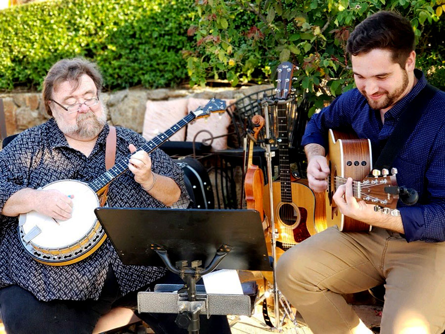 Still more! Dennis recorded on a number of film soundtracks including Back to the Future III, starring Michael J. Fox (1990) ), El Diablo (1990) ), Rio Diablo, starring Kenny Rogers and Travis Tritt (1993), Midnight Run to Oklahoma; Steven King’s horror/thriller Apt Pupil (1998) ), and the Western/comedy A Million Ways to Die in the West (2014) among others; Caplinger played mandolin with the ons tage band in the Steve Martin-Edie Brickell Broadway stage musical, Bright Star (2014). Dennis is a featured artist in the documentary Banjos, Bluegrass & Squirrel Barkers (2016), and played banjo and reso-guitar in When to Die, a feature-length documentary about the history and culture of Civil War re-enacting (also 2016).