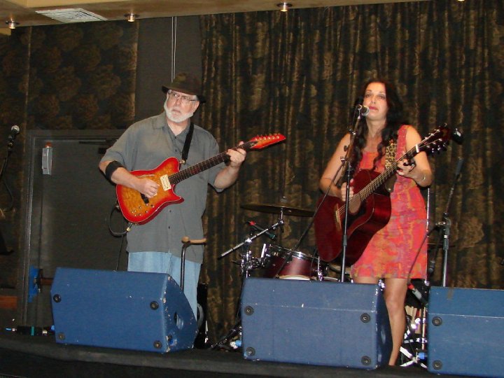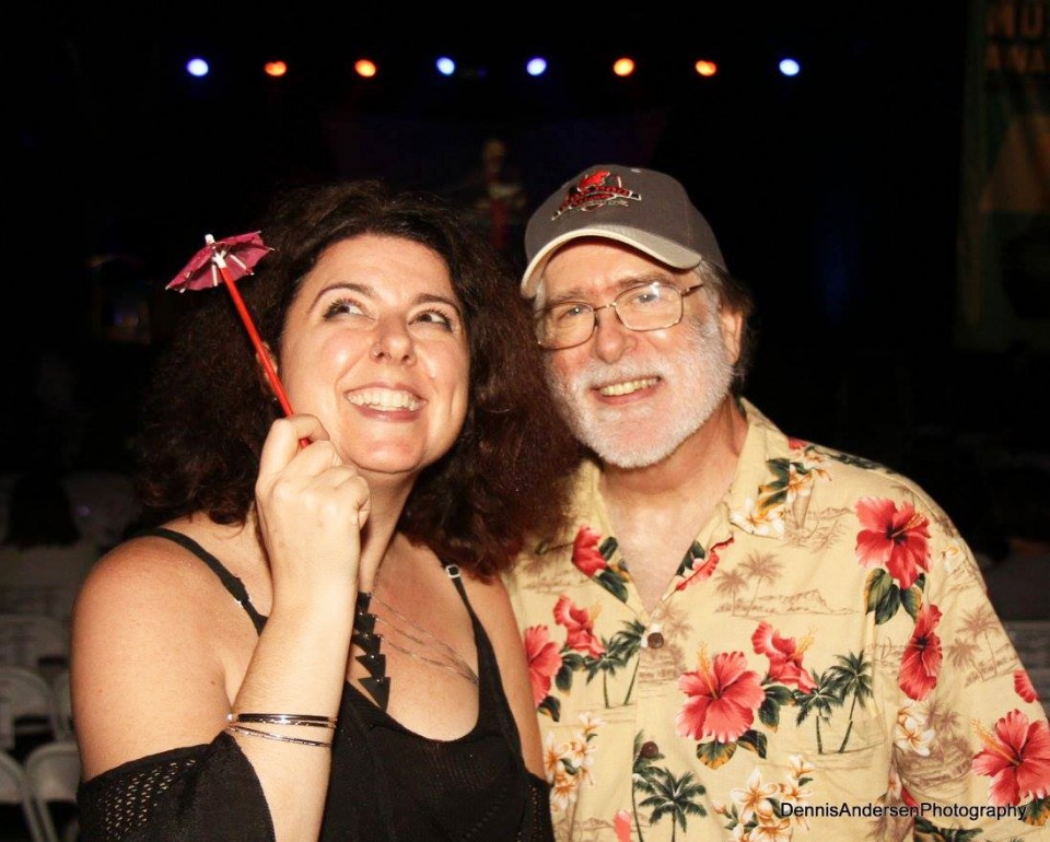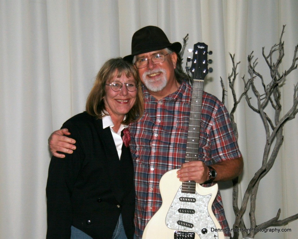 Dave with Liz Abbott after winning a Taylor guitar at the Troubadour 10th anniversary party raffle in 2011.