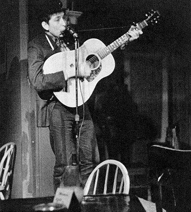 Bob Dylan, playing at a coffeehouse, 1962.
