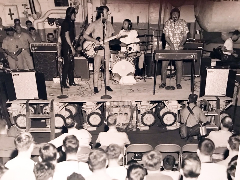 The Cascades on the USS Hancock performing in the hangar, USO Tour, 1968.