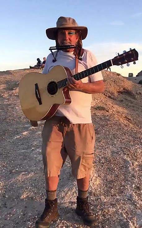 Surf, he did, but he returned to playing music, harmonica and guitar with an energy and inspiration fueled, no doubt, by the spiritual principles he picked up along the way. His harmonica work was featured on the original soundtrack the 1996 surf film Liquid Stage (directed by Michael Bovee and written by Robert Greaves), which aired on KPBS. Before that he was a featured harmonica player with the Wade Preston Band during the time the pianist had an extended residence at the esteemed Elario’s jazz club in La Jolla. Rephael adapted his harmonica expertise to a good many different projects. The variety of projects are broad and many, but I would say that my favorite of his endeavors was his tenure as a regular performer at the now-closed Inner Change Coffee House in Pacific Beach, a venue that highlighted many young local musicians that included Jewel and Jamie Shadowlight. My jaw figuratively dropped because of the way he made the harmonica express every emotion so fluently. And he would call me up to sit in a few times, the sound being something that sounded joyful, energized, dueling improvisations by two players eager for the next round of trade offs. I ran into him in Pacific Beach recently while walking through the neighborhoods. After some moments of catching up with each other, he went and got a harmonica and his guitar from his apartment. We went outside and leaned against a parked car, playing the blues, brash and bawdy. Some young men were also outside drinking beer and came to be our audience, bobbing heads and yelling swear words of exclamation as Repheal and I played on. It was an amazing moment in my recent experience. Somethings do not change. It was the most profound kind of fun. As well it should be. Play on, Repheal.