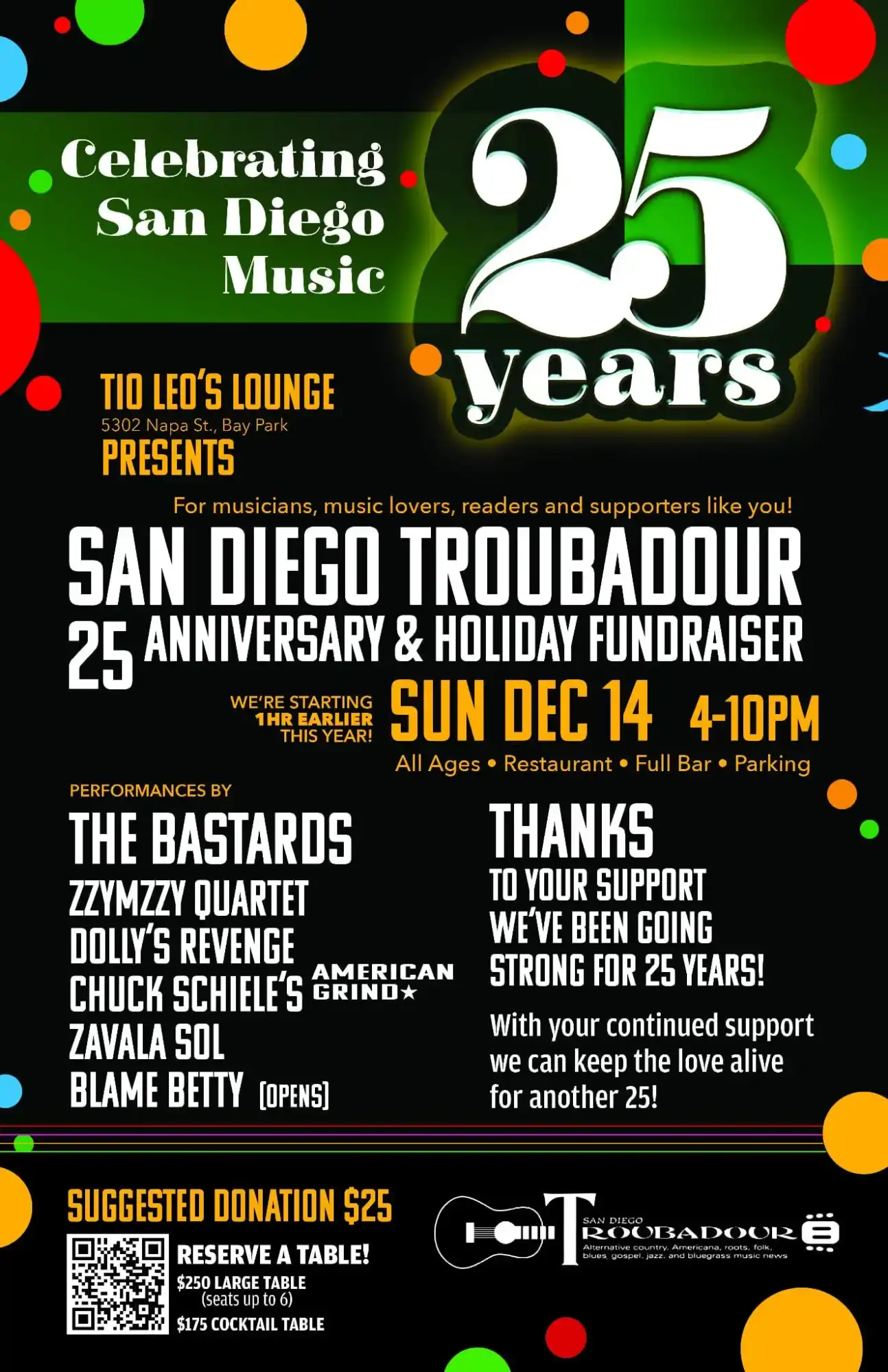 Hey, Everybody! The San Diego Troubadour Is About to Celebrate its 25th Anniversary and Publisher Liz Abbott Is Here to Tell you About the Upcoming Celebration and Fundraiser, Along with a Bit About its Storied History!