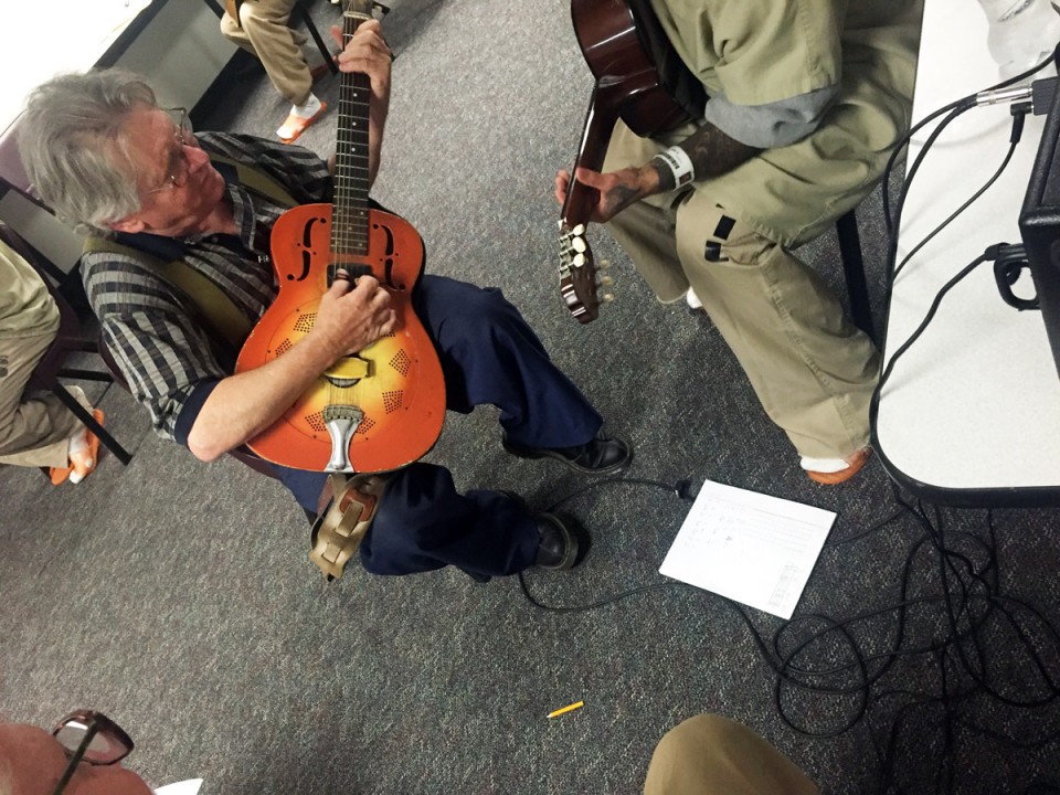 “Anyone who is over 18 and can pass the Sheriff’s background check can participate–provided they can make the time commitment.” The curriculum is suggested but varies depending on the volunteer and inmate skill levels and interests. There are also guest artists.” These include local blues guitar master Robin Henkel.