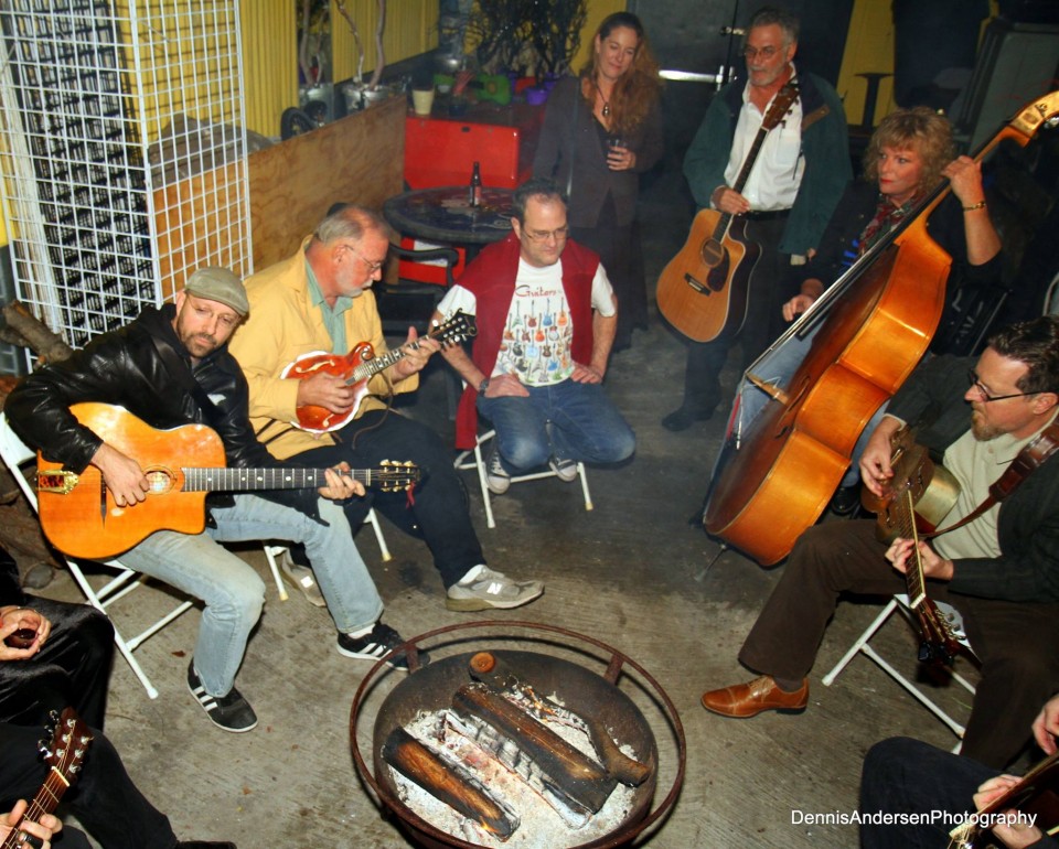Despite the frigid temperatures, a jam session broke out outside. Gathered round a fire pit on the lawn were a bunch of guitar players. They were in need of a bass player, so I offered my services. (Note: I usually try to keep my musical experiences separate from my journalistic work, but in full disclosure, I play the string bass.) As the cold seeped into my joints, and I wanted to avoid frostbite, I decided to head into he warmth of the house. Hill, perhaps still used to the even more frigid New York winters, wearing only a light cream-colored sweater, took over.