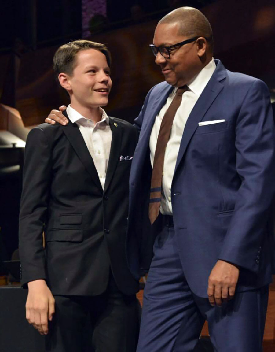 Murray with Wynton Marsalis after winning the Essential Ellington Competition in 2019.