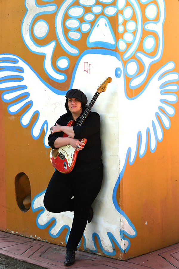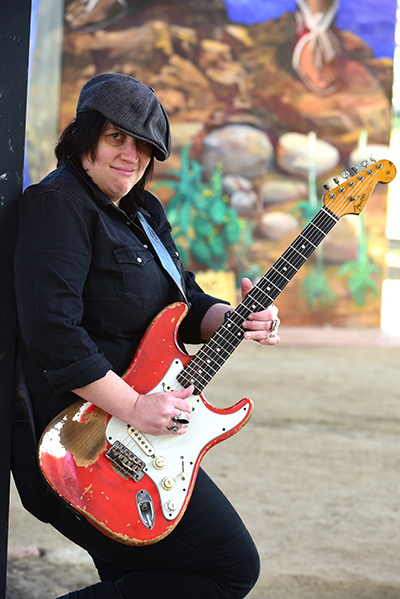 We finally had the chance to sit and talk prior to a record release party at the Thunderbird Analog Recording Studios in Oceanside. And it started with how she describes her own music. “That’s a tough one.” She laughs. “It’s really all realms of any roots-based music. I tend to gravitate toward the more melodic, but that ranges from blues and soul to rock ‘n’ roll and country, anything that has melodic lines. I find a way to incorporate that in whatever I’m playing. I had all these things I grew up listening to–xlassic rock, old aoul music, punk rock, and eventually traditional blues but Candye [Kane] opened me up to a lot of the old big band swing, all the great vocalists… and country. Since then I’ve always liked the challenge of playing something people don’t expect me to play.”