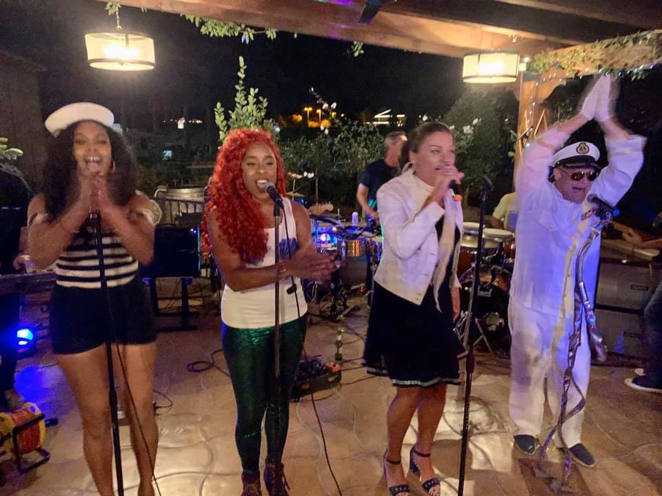 LA: I do! [laughing] It’s has been a really steep learning curve for me. It’s called Sofa King Bueno [laughing] We haven’t done a lot because of Covid, but we’re trying to get back on it again. It’s about eight or nine people and it’s a big funk band. We have brass and keyboards, drums, bass, and percussion. We have a number of singers—a male singer as well as my sister and I. We do Aretha, Dusty Springfield’s “Son of a Preacher Man,” and we’re trying to incorporate new music into it now. It’s exciting; I love to delve into different styles of music and to just explore.
