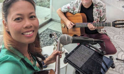 After they played, I stuck around and the bass player, Steve [Hoshko], came up to the bar and I asked, “Hey, how often do you guys play here? I want to come back to see you.” He told me they were playing weekly at the Blarney Stone in Clairmont, and I started going there every week. I eventually dragged my sister along and one day they said, “Do you sing? Do you know any jazz songs?” Yeah, I know some. And they said, “Well come up and sing!” And I came up and sang “My Funny Valentine” one day and then every week they had me come up and sing a song. Then it was, “What else can you sing? …and let’s add to it.” I slowly added more music; then my sister Ruth started playing violin with the band and we got to know them really well and we’re still playing with them today. We used to play weekly but Covid tripped everything up, but now it’s a monthly gig at Tio Leo’s. The Jazz Pocket Swing band was the first.