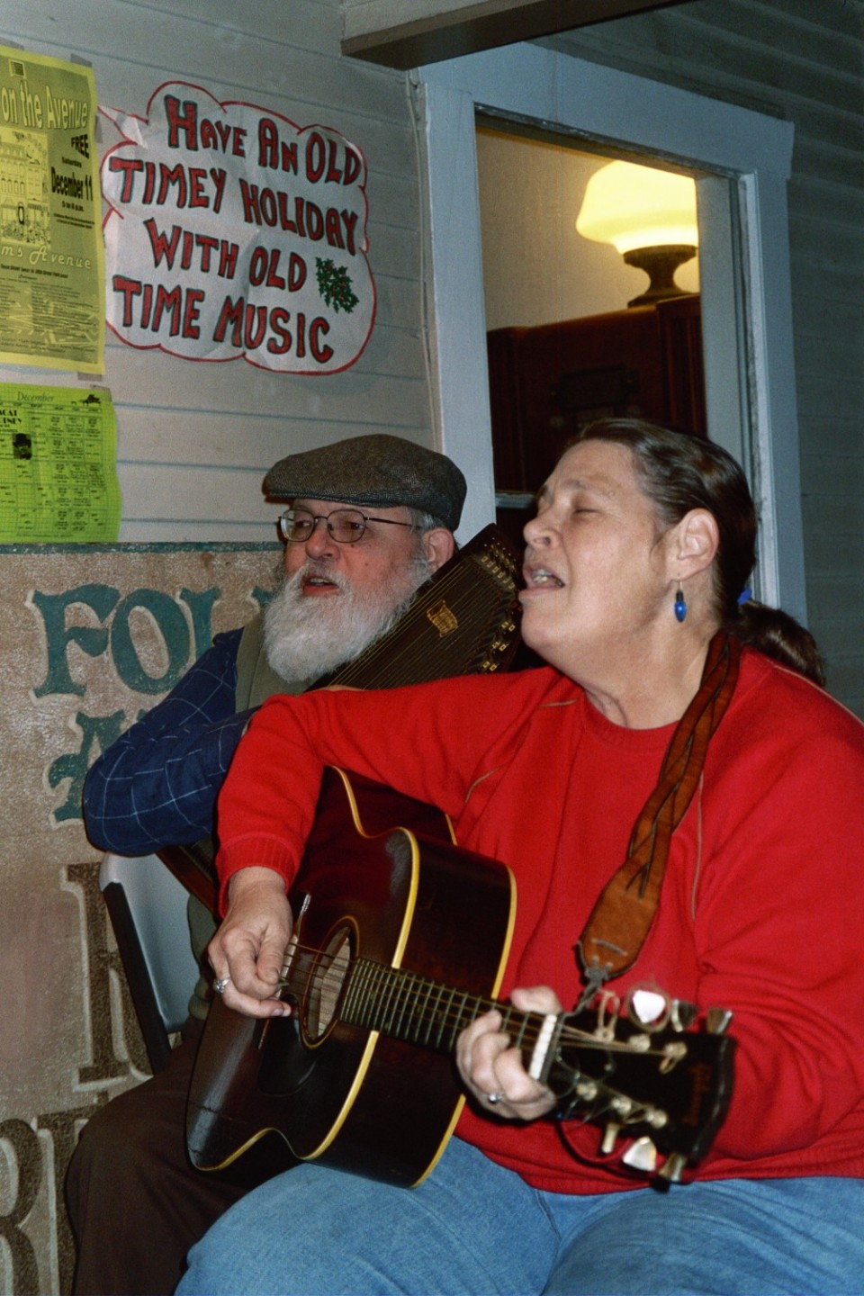 It was a joy for both fans and performers–and satisfied all music tastes from the raucous soloists and bands in the walled-in Beer Garden to the deep and meaningful songs reserved for the Church Sanctuary, and the protest songs highlighted in the Church Social Hall. In between there were a dozen indoor and outdoor stages from coffeehouses to impromptu folk festival street venues that packed ’em in from one end of Adams Avenue to the other. All of it reflected Lou Curtiss’ vision of folk music as the people’s music: unfiltered and uncensored for young and old alike. And, always somewhere along the way one would encounter Lou himself, leaning back with his gorgeous autoharp on his lap, presenting his old-time version of a Carter family song, an old gospel tune or a rare blues song he had rescued long ago from one of those ancient record bins.