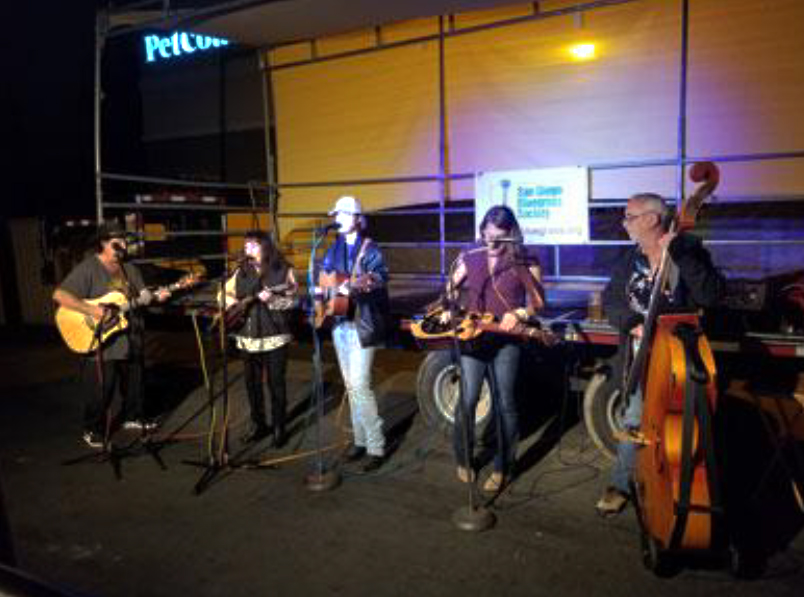 Pick-up band on stage, in November, at the SDBS second Tuesday in Poway.