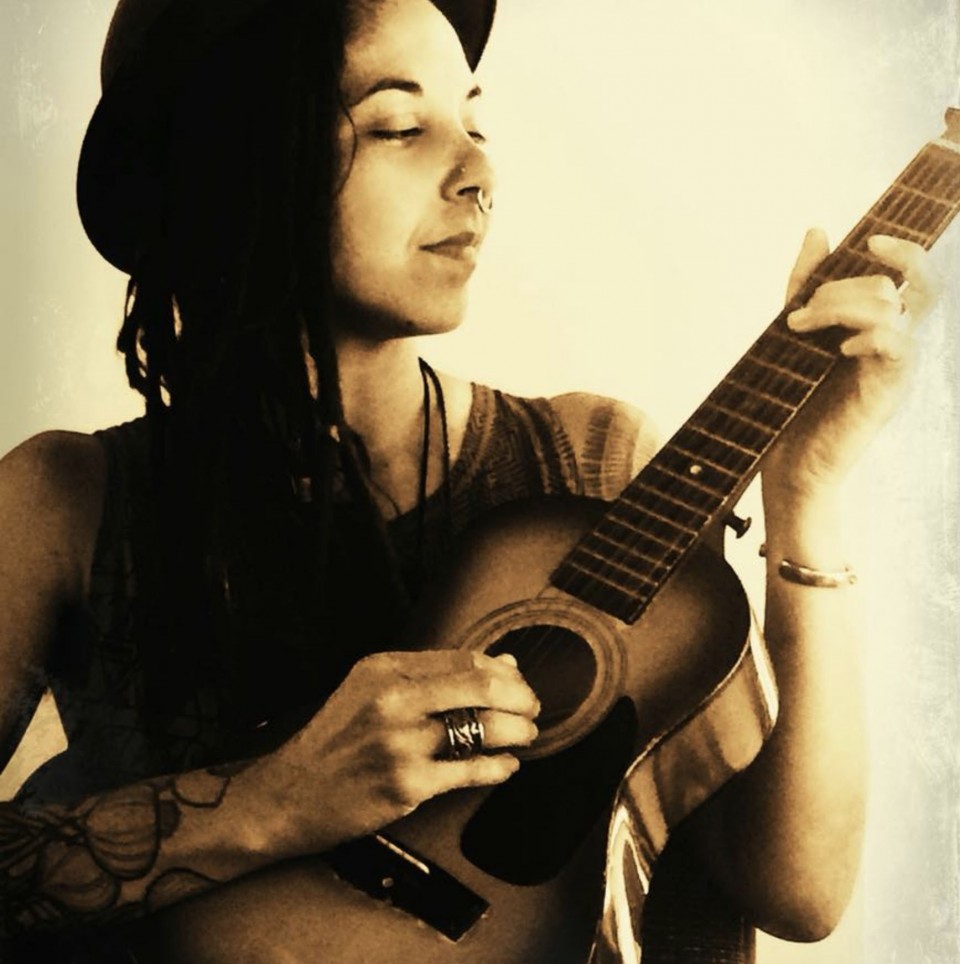 From the gravel in their voice to the tattoos drawn upon their skin, Rhythm Rose is a walking portrait of experience. (Wait a minute, did I just say they? Am I still talking about one person? As various expressions of gender are more widely being acknowledged in our culture, there are certainly some kinks to work out in our language. When avoiding the use of a “him” or “her” pronoun, most often these days we elect the term “they,” acknowledging both the male and female sprit that resides in an androgynous individual. Rhythm is certainly a complex human with far more than one facet than any single gender or label can describe effectively. There’s no need to be confused. “They” can refer to a group or it can refer to a non-binary-gendered individual. This is a newer function of our language. Just roll with it. Let context be your guide. It takes a little practice for all of us. We are only talking about one human in this article most of the time.) A musical staple in San Diego, Rhythm Rose has spent decades writing songs entrenched in lessons learned through a rich life filled with travel, love, spirituality, and heartache. Both Rhythm’s performer persona and songs invite question and challenge to the audience, with a common thread of a life filled with gratitude. Audience curiosity is one of the telltale signs of a great performer, but one can know Rhythm for decades and still be left with a million inquisitions.