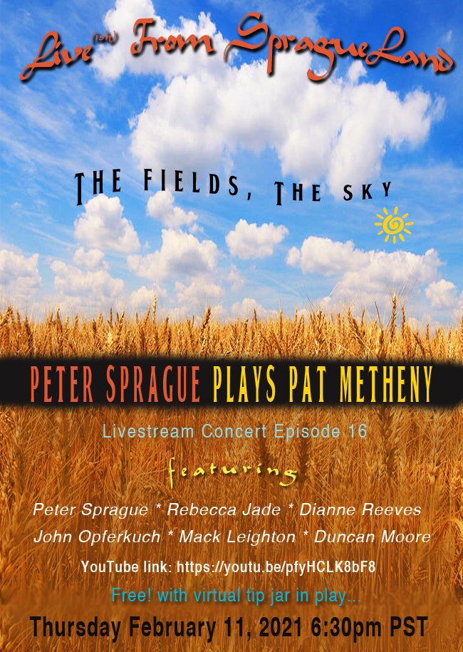 Peter Sprague plays Pat Metheney, Livestream concert, Thursday, February 11, 6:30pm.