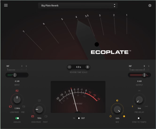 Enter HEAR360 (https://www.deptofsound.com) with a surprise that few saw coming: ECOPLATE ($149, currently $99), a plugin model of the Ecoplate I, a great sounding descendent of the plate reverb, circa 1980. Ecoplate I was and still is beloved by scores of engineers and producers for its ultra clean sound, which shimmers like a hi-fi halo around anything it touches, i.e., the snare on Michael Jackson’s “Thriller,” or George Benson’s vocals on “Give Me the Night.”