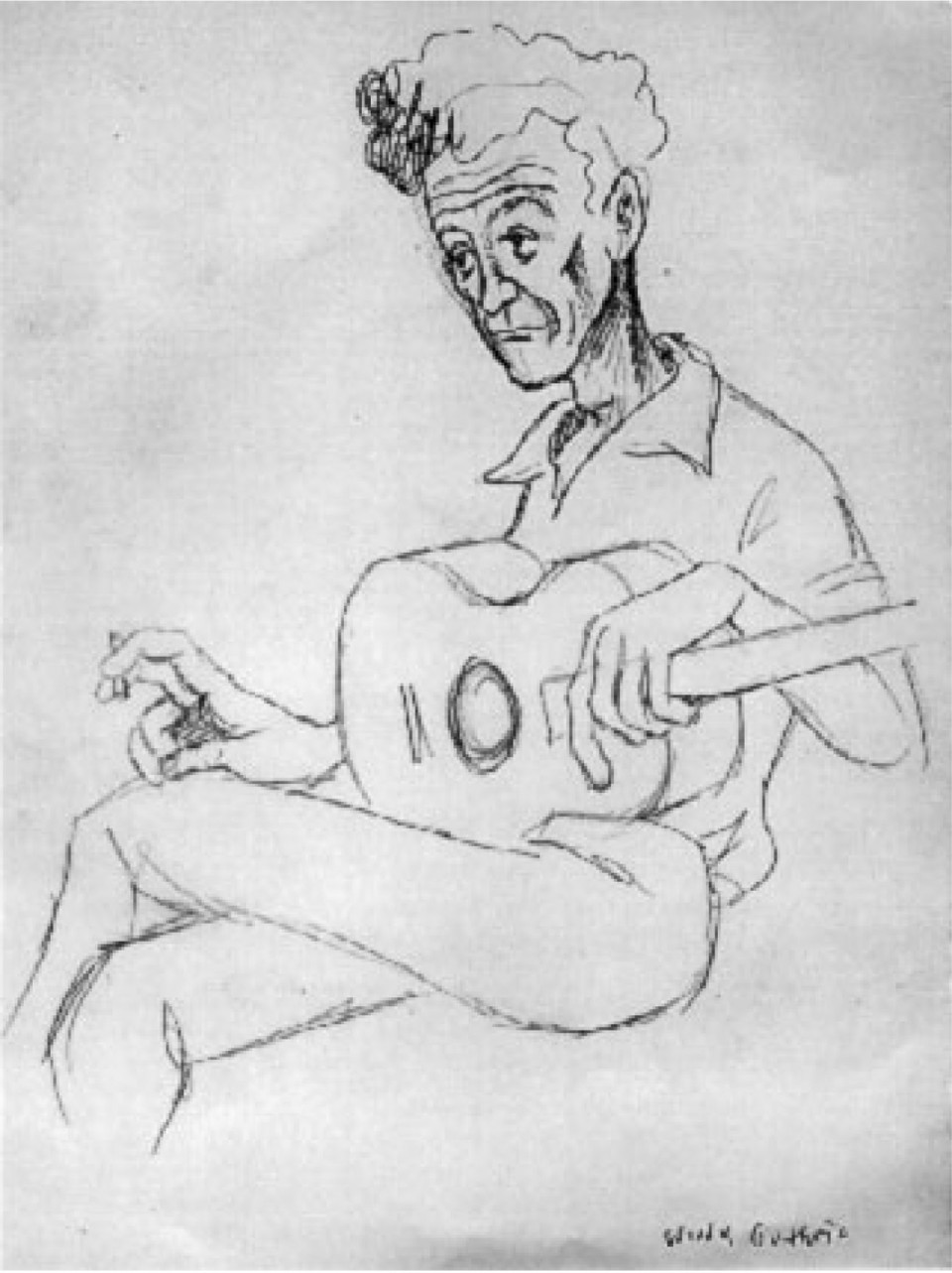 After a couple of years with the vaudeville company, however, Hinton felt a strong calling back to his other love: the living sciences. With his parents now settled in a suburb of Los Angeles, he enrolled at UCLA to pursue a degree in zoology. Once, while out in the desert studying reptiles, Hinton heard that John Steinbeck was at one of the Okie camps in the area. Being a great fan of Steinbeck’s, Hinton got up his nerve and went over to meet him. He was also introduced to Woody Guthrie, who also happened to be there.