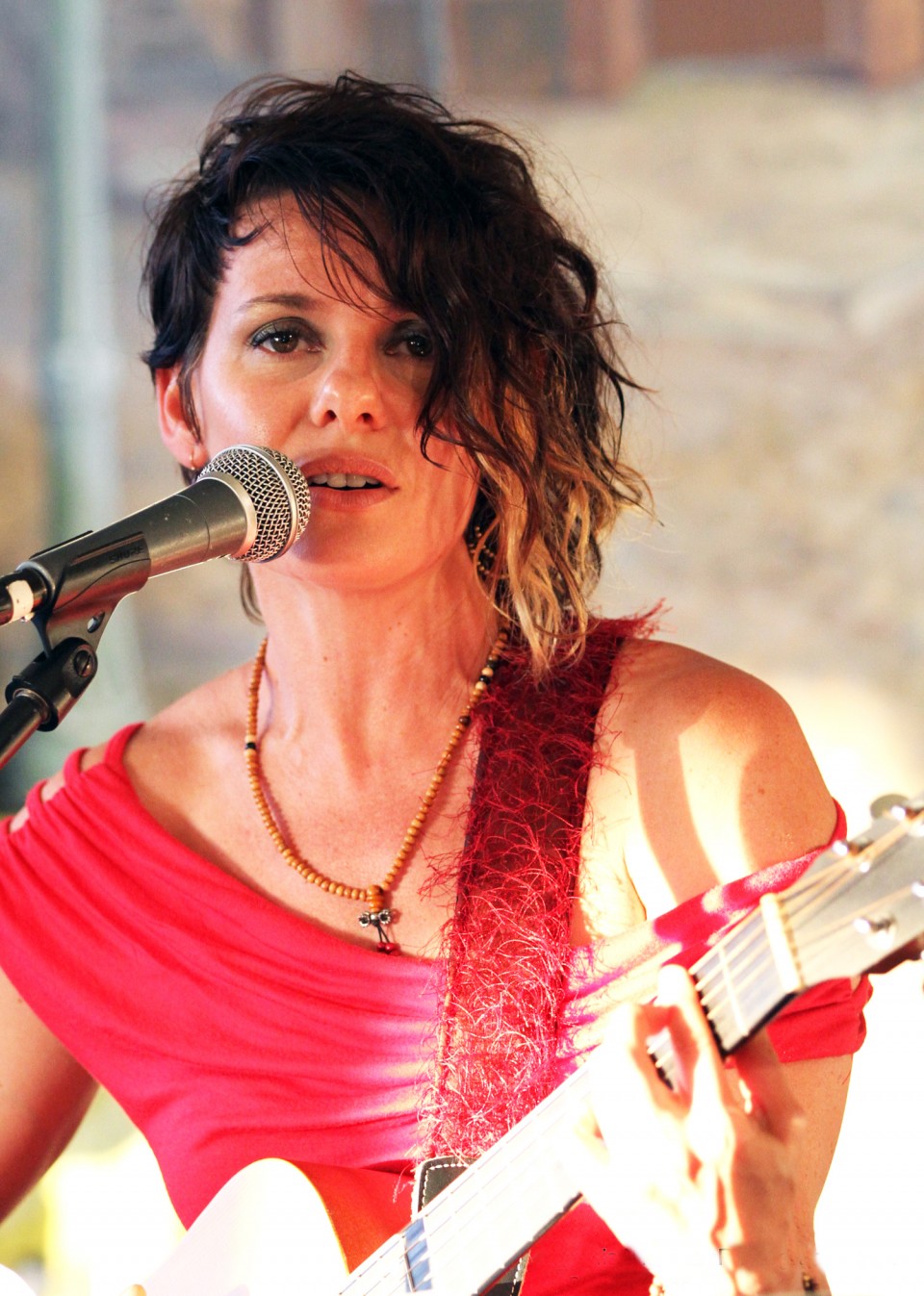 Her audience at the beginning of this set will be a mixture of people taking a rest and generators and compressors farmed out to this East pasture–clattering away and giving her some at times fierce competition for ear attention. She has a nylon string guitar, several pedals that attach to a loop player and PA, and charges into a set, undaunted by the conditions. It is a study of a working musician performing her craft.