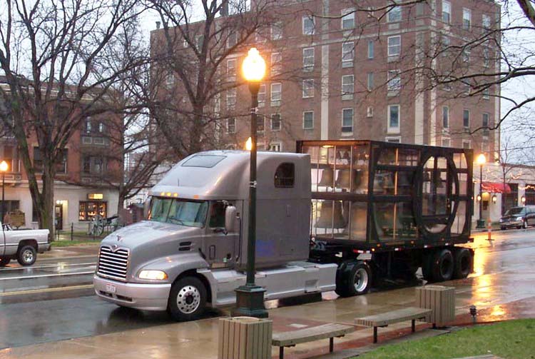 Chiming bells are controlled in various ways, whether teams of people pulling ropes or automatic mechanisms involving pulleys, weights and cogs, etc. However, the most sophisticated performance-oriented tower bell system is the carillon, dating back to 1510 in Flanders. This is the original heavy metal music! These instruments only exist in grand cities—but a welcome and rare novelty is the traveling carillon. There have been three traveling carillons in the United States in recent memory. The largest one still rings out, but no longer travels, as it retired to a more sedentary life in sunny Florida. It was on April 20, 2019, the Chime Master Mobile Millennium Carillon officially changed ownership to become the Andrew W. Crawford Memorial Carillon. It now resides at a fixed site at the main entrance of the Venice Performing Arts Center in Venice, Florida. It toured for over a dozen years as the Royal Eijsbouts Traveling Carillon.