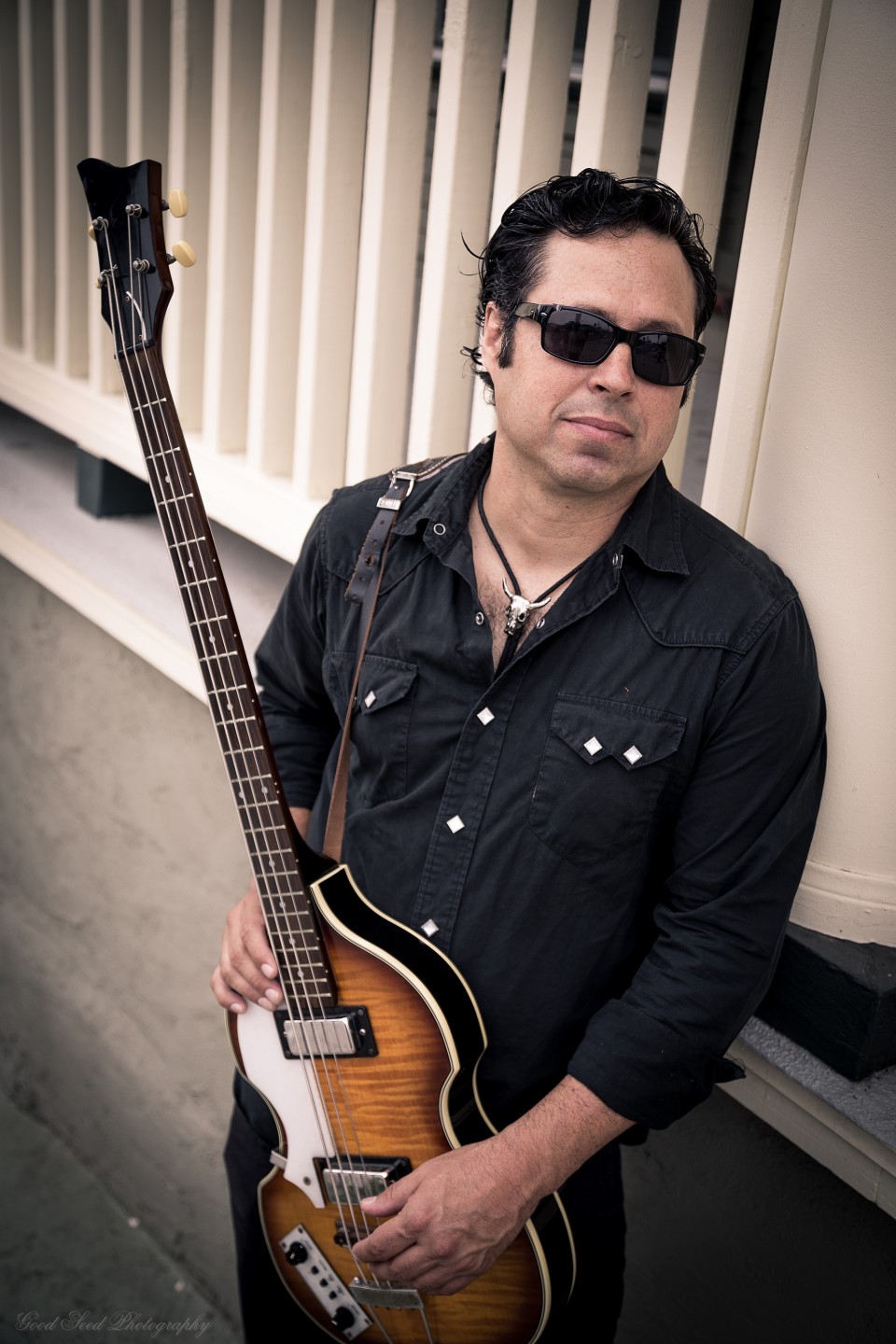 He got his first bass in junior high but didn’t start playing in bands until after relocating to San Diego in the late 1980s. A lefty, he learned bass and later guitar upside down with the strings reversed (like bluesmen Coco Montoya and Eric Gales) after swapping guitars with his brother to learn.