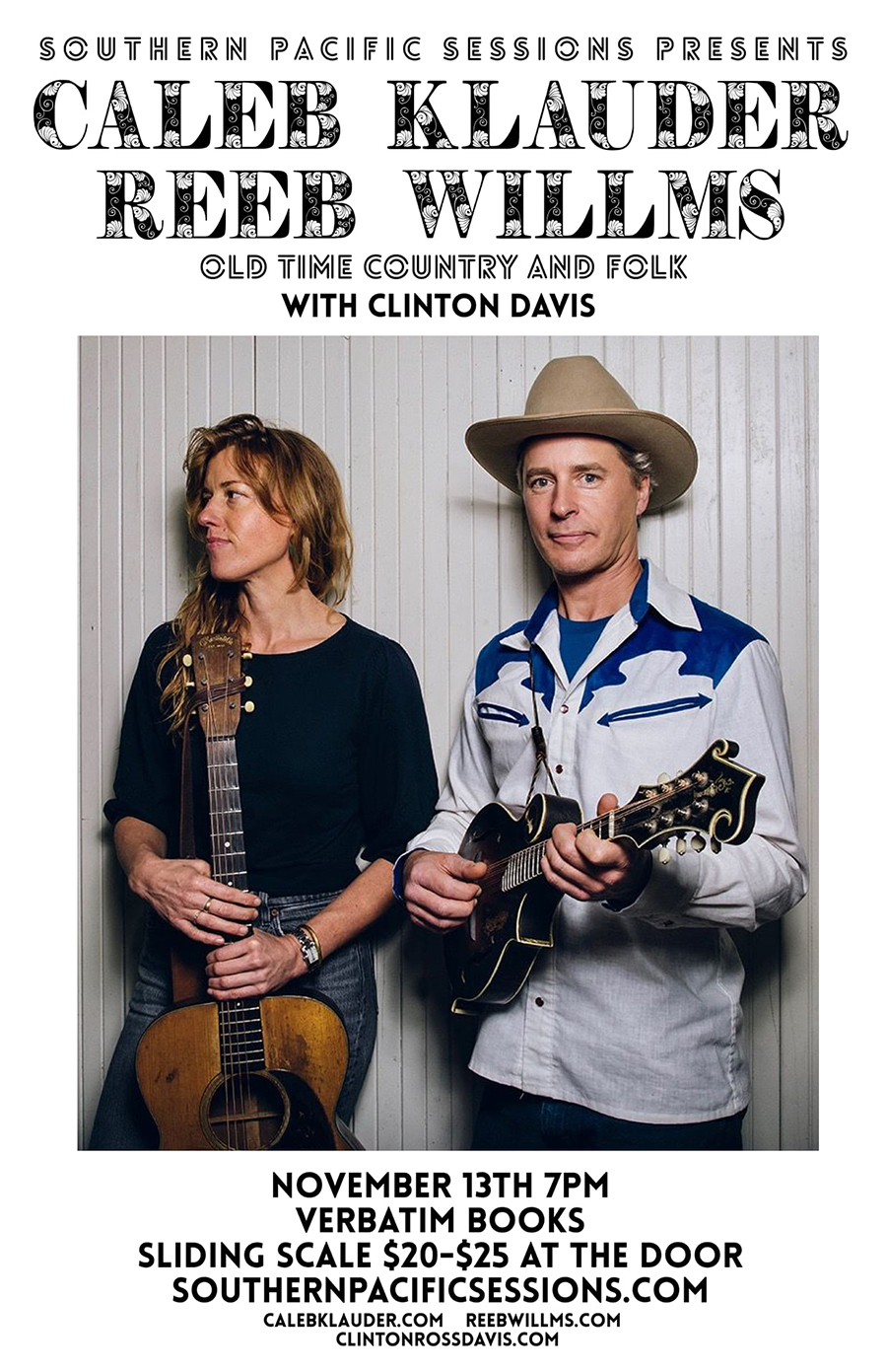 Since its inception in 2017, Southern Pacific Sessions has brought some of the finest musicians spanning the folk diaspora to perform in San Diego. Fans of Americana, old-time, blues, bluegrass, and beyond have rejoiced that the programming has brought internationally acclaimed artists from around the world to perform in an intimate acoustic environment. So, after an 18-plus month-long hiatus, Southern Pacific Sessions is making a triumphant return on November 13th at Verbatim Books in North Park, hosting one of the most masterful duos of American folk music: Caleb Klauder and Reeb Willms.