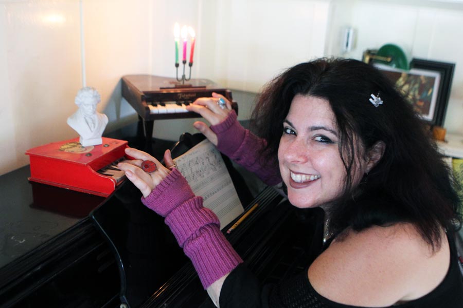 “Before I was five years old, I saw a pianist on the television who had a mirror above his keyboard, and I was just fascinated by that,” she says. “So my parents bought me a toy piano and I played along with every piece of music that came on the TV. But when I turned five, they bought a real piano, and I started taking lessons until I was 12. When I first started playing I used to have to take breaks during my lessons to do cartwheels,” she says laughing. “I had too much energy to sit still for an entire half-hour lesson.