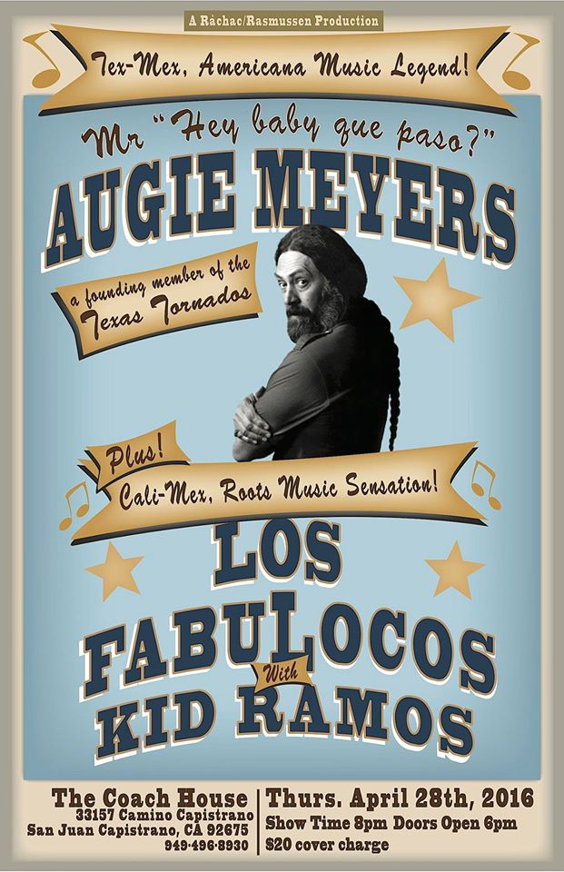 Meyers, who is appearing locally twice in April as a solo artist, joined with fellow original member Doug Saum to play music that evolved into a hybrid of Tex-Mex and Cajun blues, bringing these styles into the pop mainstream. Local musician Andy Rasmussen will be part of Action Andy and the Hi-Tones, backing Meyers at appearances scheduled for April 28 at the Coach House in San Juan Capistrano, and on April 30 at the Kensington Club on Adams Ave. Both gigs are presented by Rachac Rasmussen Productions; for the April 28 gig the doors open at 6 PM and the cover charge is $20 for an 8 PM show, that will also feature Los Fabulocos with Kid Ramos. The Coach House is at 33157 Camino Capistrano, 949-499-3930.