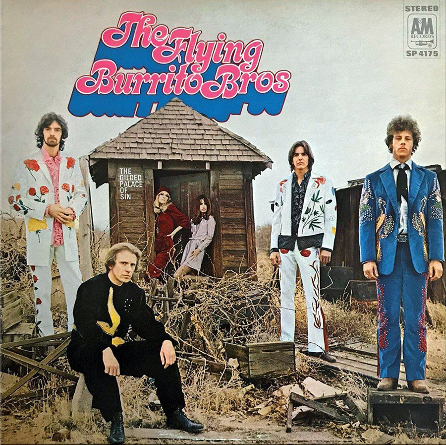 Flying Burritos iconic cover image for The Gilded Palace of Sin, 1969. (Chris Etheridge, Sneaky Pete Kleinow, Gram Parsons, Chris HIllman)
