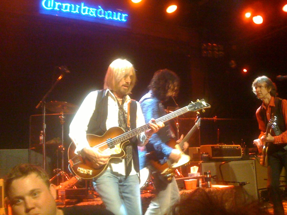 Mudcrutch broke up in 1975, after Petty was offered a solo deal by Shelter Records, and in 2007 he decided to reform the group and explore what they sounded like after a 30-year hiatus. Three-fifths of Mudcrutch is Petty, Campbell, and Tench, along with guitarist Tom Leadon and drummer Randall Marsh. In Mudcrutch, Petty is the bassist and shares lead vocal duties with Tench and Leadon. They performed a week-long residency at the Troubadour in West L.A. in April/May of 2008, and I was able to catch the last two performances from the lip of the stage. The POV was absolutely mind-boggling, with Petty telling the audience, “This is probably the finest bar band you’re gonna hear in West Hollywood tonight.” Or any night for that matter.