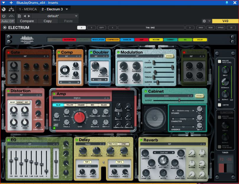 All of the effects are “photo realistic,” but if you prefer an Ableton Live-like 2D interface, it’s yours with the click of a button. Electrum is definitely weighted toward guitar players, but I prefer to view it as an excellent FX scratch pad, as you can freely move amongst the various effects and try things out without endlessly scrolling through menus and the like. So try it on drums, keys, bass, and vocals, too. In the heat of inspiration, tools like this save valuable time and keep us in the creative flow.