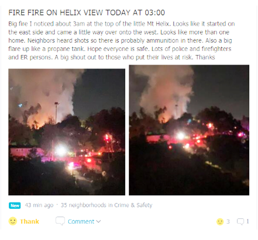 I picked up the phone, telling him that they weren’t gun shots but to be on alert in case we had to evacuate. “It’s another house down the street,” I said, “going up in flames.”