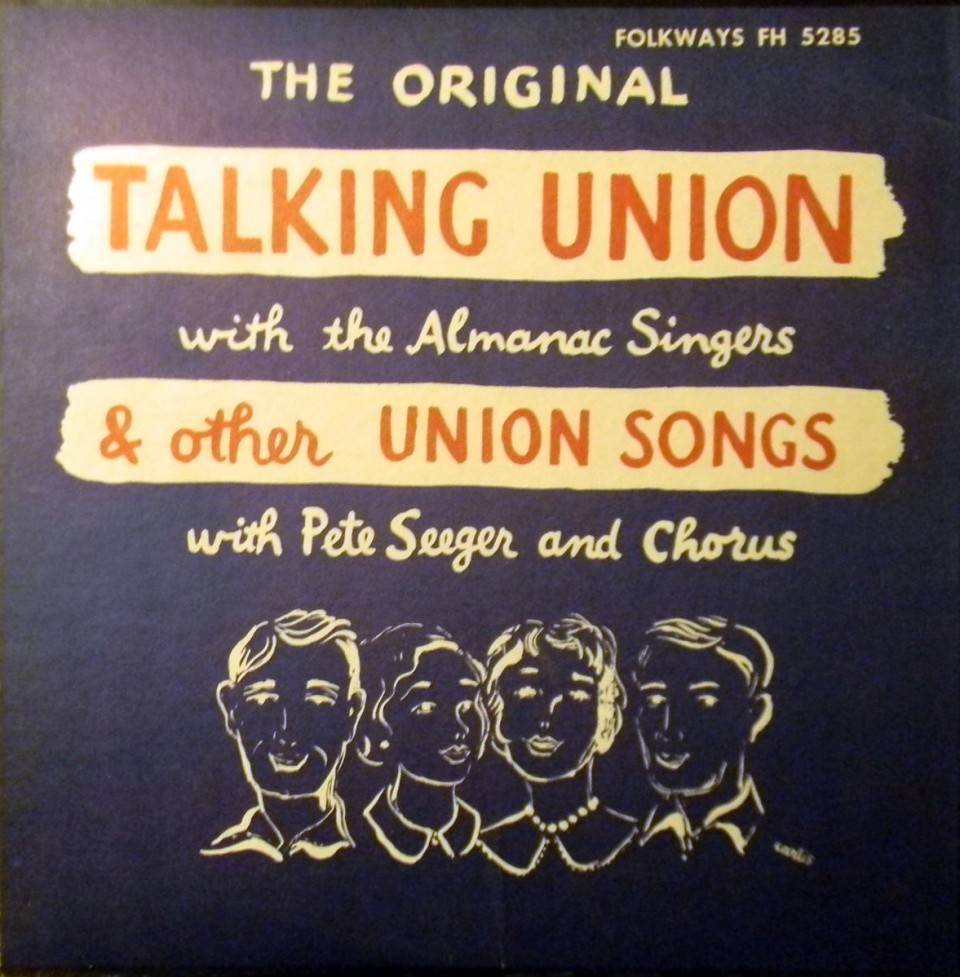 Growing up in Detroit and San Diego, I cut my teeth on labor and protest music from listening to my parents’ records. One that stands out for me was the album Talking Union by the Almanac Singers, a supergroup based in New York City and founded in 1940 by Millard Lampell, Lee Hays, Pete Seeger, and Woody Guthrie. They chose the name because Lee Hays had said: “Back home in Arkansas farmers had only two books in their houses: the Bible, to guide and prepare them for life in the next world and the Almanac, to tell them about conditions in this one.” The Almanac Singers specialized in songs that attacked fascism and racism and that were pro-union. In fact, one of the most famous photos of Woody Guthrie is where he is strumming his guitar and on the guitar was taped the words “This machine kills fascists.” The Almanacs all agreed that their purpose was to use music to aid the fight for social, political, and economic change.